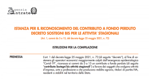 Finalmente è stato pubblicato il Provvedimento attuativo dell’Agenzia delle Entrate n. 175766/2021 del 02/07/2021 che stabilisce le modalità per poter presentare l’istanza del contributo a fondo perduto “alternativo”, ribattezzato “Contributo a Fondo Perduto Decreto Sostegni Bis per le attività stagionali”, stabilito dall’articolo 1 del Decreto Sostegni Bis (DL 73/2021), entrato in vigore in data 26 maggio 2021.
